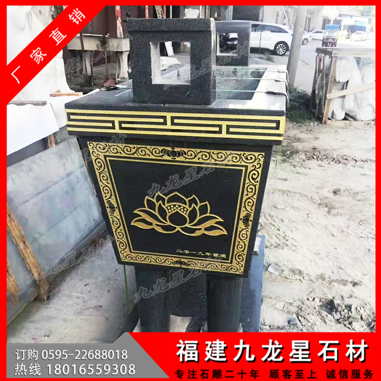石雕香爐的制作石材通常是優(yōu)質(zhì)顏色偏深的花崗巖石料和青石石料,青石本身顏色呈現(xiàn)青色,較為古樸,青石石雕香爐突顯了整個(gè)香爐的莊重氛圍,為佛教圣地增添了幾分威嚴(yán)。石雕香爐的外形分為圓口、方形口、長方形口,圓口香爐一般是三足兩耳,方形香爐一般是四足兩耳,長方形香爐一般也是四足兩耳,還有少許兩層石雕香爐。