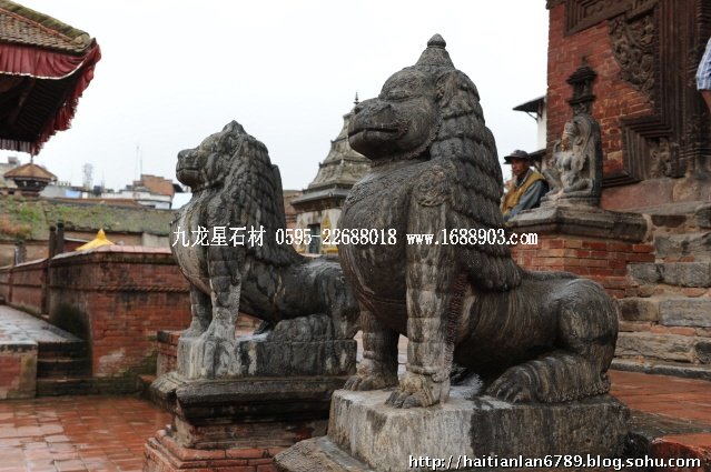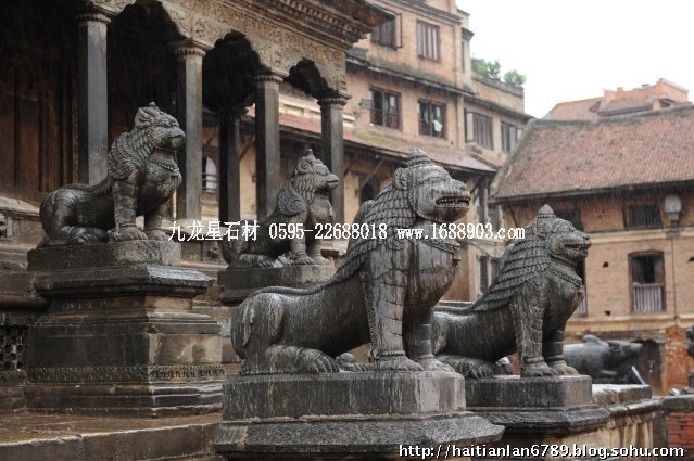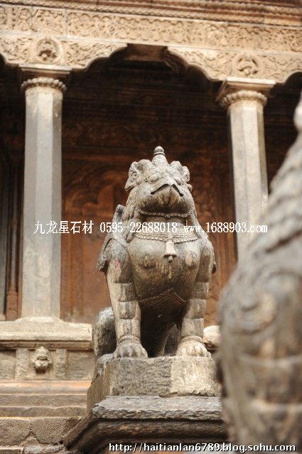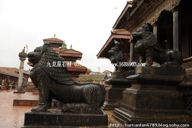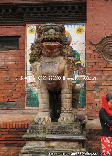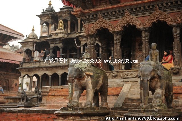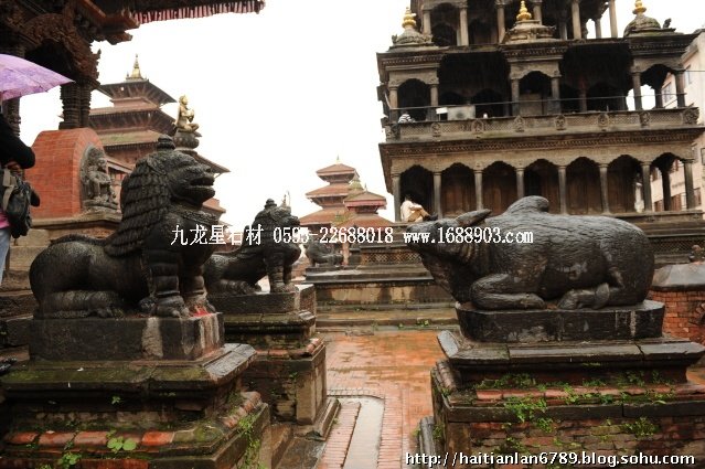 帕特王宮廣場匯集了眾多風(fēng)格古樸的寺廟和石雕。眾石獅們在各自的崗位上日夜守衛(wèi)著馬拉國王的古代宮廷,黑天神廟,加格納拉揚(yáng)神廟,帕特國王雕像柱和黃金廟。尤其是廟克里希納廟、也稱黑天神廟,處在王宮廣場的核心位置,供黑天神,建于1667年,由于是王室所建,規(guī)模自然比普通神廟大一些,氣勢上勝一籌。所以從外觀上就可以看到,整個(gè)神廟坐落在高臺(tái)基之上,主殿的圣所正上方,聳立著一座有21個(gè)鎦金塔頂?shù)闹窆S狀塔頂,塔亭的欄桿間,栩栩如生的雕刻著印度古典史詩《摩坷婆羅多》和《羅摩衍那》的圖像、神像和鳥獸。除塔頂外完全用石頭建成,遠(yuǎn)遠(yuǎn)望去,像是一件精美的石雕工藝品。這是尼泊爾建筑藝術(shù)的奇跡,而這樣一座偉大的建筑,竟完全不用圍墻,也沒有手持武器的衛(wèi)兵。那么,誰來護(hù)佑她的安全呢?自然是石獅子了。門前一個(gè)獅子衛(wèi)隊(duì),那叫一個(gè)威武啊,就算是牛鬼蛇神壞人也沒有敢起歹心的。