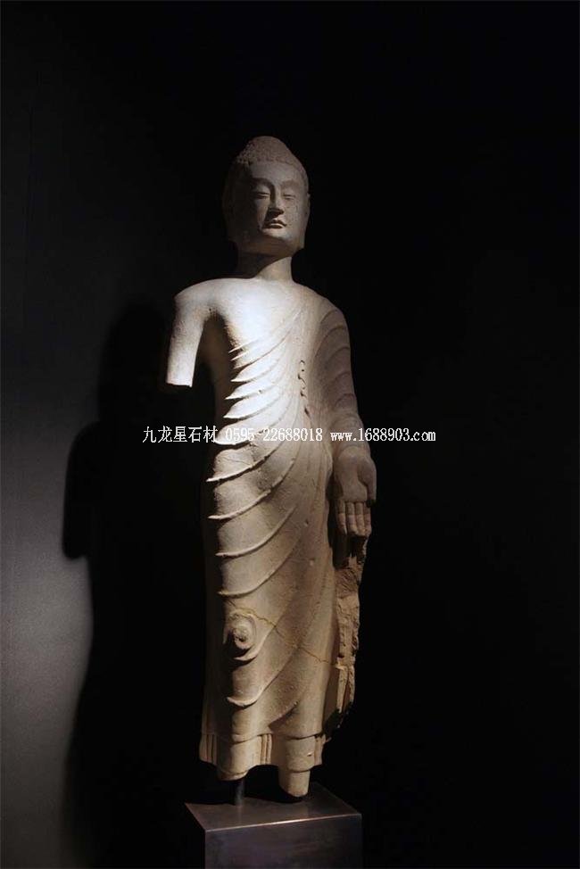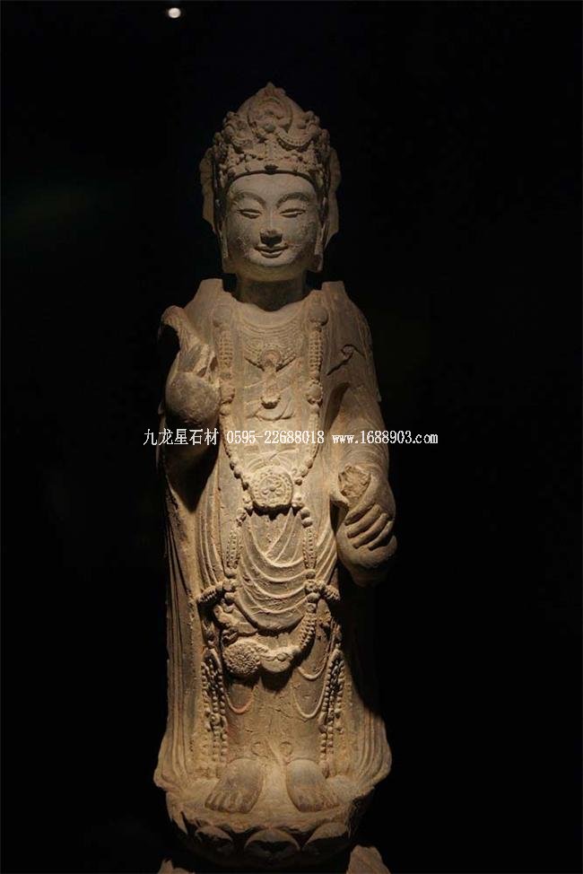 北魏、北齊時(shí)期,佛像雕刻藝術(shù)趨于巔峰極致之境界。北魏佛像造型挺拔秀美,細(xì)腰寬背,衣紋是富于裝飾的淺刻。北齊造像多為面型豐腴,衣紋簡(jiǎn)潔,服薄貼體,整體平潤(rùn)光潔,與面部寧?kù)o安祥的表情和諧一致。這類疏簡(jiǎn)淳潤(rùn)的佛像造像,無論從光潔的肌體或平滑衣物里,似乎都能感覺到內(nèi)部筋肉的輕微變化。潤(rùn)澤的體面與舒緩下垂的線條,使形象在疏簡(jiǎn)平淡中流露出內(nèi)在的氣質(zhì)。