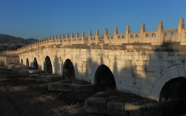 清代順治皇帝的孝陵里有一座七孔橋,它是陵區(qū)眾多橋梁中的佼佼者,橋孔最多,橋身最長(zhǎng),如玉虹垂落,雄偉壯觀。這是一座神奇別致的橋,特殊之處在橋欄板,乍一看與其他橋上潔白的玉欄沒(méi)啥兩樣,可用手輕輕一敲,則可發(fā)出金鐘銀鈴一般清脆悅耳的音響,使人大為驚異。這是因?yàn)闄诎迨现泻?0%的方解石,含有鐵質(zhì),所以才會(huì)有叮當(dāng)作響的妙音,如鐘如罄。建筑時(shí)根據(jù)每塊欄板含鐵量多少,按中國(guó)古代音律由宮、商、角、徵、羽五音組成,所以孝陵七孔石拱橋也稱為“五音橋”。