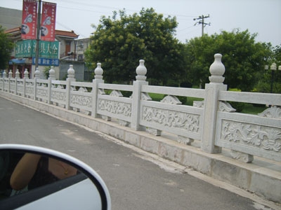 4﹑羅漢欄桿,是指只有石雕欄板而不用望柱的石欄桿,這種欄桿不如尋杖欄桿華麗,卻多了素雅之氣。這種欄桿常用于石橋上,且兩端多用抱鼓石。