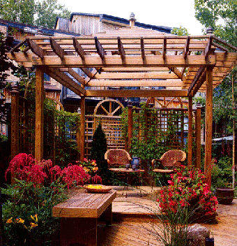 亭架與花架可以結合布局,也可以單一選擇。在結合布局時亭架通常為花架的入口、轉折點或主要休息區(qū),靠花架來連接交通。單一布局是時亭架可以利用自身的通透輕靈的特點在小空間中運用而不感到壓抑;花架可以根據(jù)場地的環(huán)境結合地形及功能需要采取靈活多變的布局方式。
