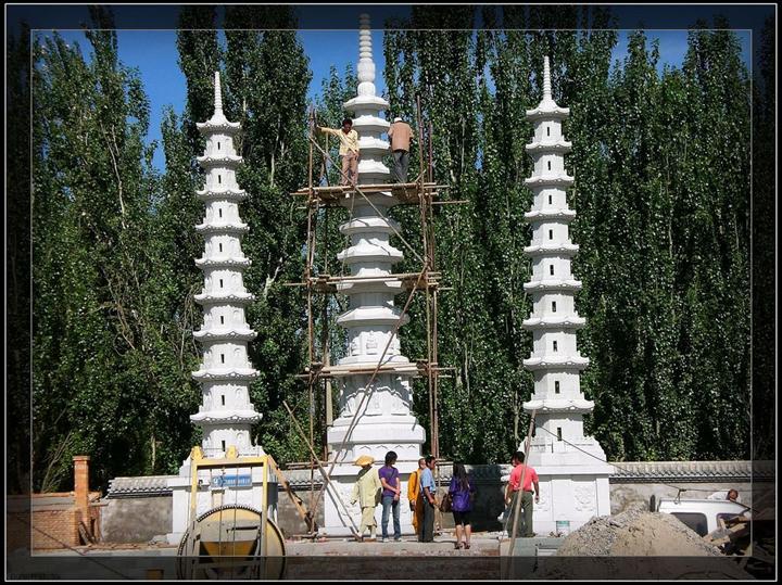 麒麟石雕 麒麟是中華民族自古相傳的吉祥瑞獸,并不是佛教的傳統(tǒng)造像題材,其形似鹿,頭上一只角,全身披鱗甲,尾像牛尾,傳說它不踩任何活物,是“設(shè)武備而不用”的有德性的“仁獸”,為美德的象征,與龍、鳳、龜合為“四靈”。。龍、鳳是我國古代勞動人民創(chuàng)造的理想動物形象,契丹族對龍似乎有著特殊的愛好,龍紋亦反復(fù)出現(xiàn)于遼貴族的冠飾、服飾及佛塔裝飾中,與有遼一代相始終。羊、馬、鹿、雁等是契丹畜牧狩獵業(yè)代表性動物,如藥師塔上的鹿、羊浮雕,其上的鹿前蹄落地,后蹄揚起,作奔馳狀;雙羊浮雕,兩只羊雙角相抵,領(lǐng)下有一縷長須,肢短體碩,似從高處躍下,遼塔上的動物造型體現(xiàn)了理想化與現(xiàn)實化的結(jié)合。