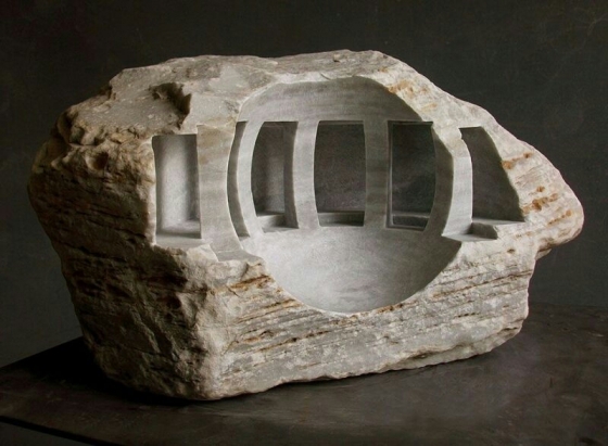 堅(jiān)固的石頭內(nèi)雕刻出的建筑空間展現(xiàn)了一幅幅復(fù)雜的內(nèi)部世界圖景,變幻的視角和光線讓雕塑呈現(xiàn)出不同的面貌。