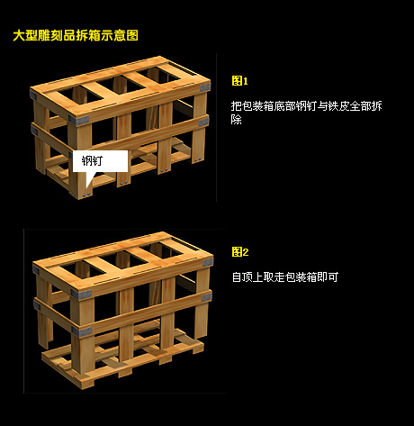 大型雕刻品拆箱示意圖