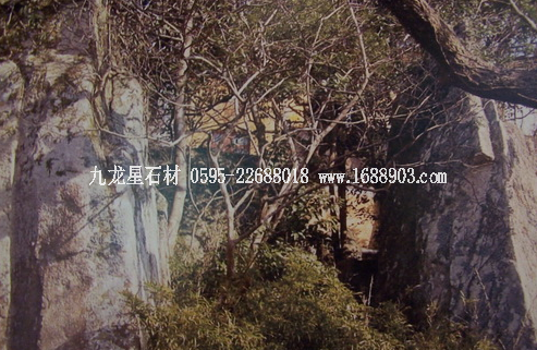 西天門,位于心字石景點(diǎn)上方(見圖),該處有塊蛤蟆石與山邊的一塊巨石相聯(lián),兩石相峙似門,上又覆巨石,題鐫“西天法界”四字,門右巨石上題刻“證菩提道”、“寰海鏡清”。西天門外有一塊似蛇首的大石塊,形象逼真,惟妙惟肖,流傳著發(fā)人警醒的觀音斗惡蟒的故事。進(jìn)門右上峰頂,一石壁立,酷似一老僧佝腰負(fù)囊面西而行,稱達(dá)摩蜂。清吳祺詩云:“蕭梁臺殿草茸茸,面壁親傳少室宗。只履西歸無覓處,誰留明月照孤峰?!北旧缴湓娫?“嵩山人似壁,補(bǔ)洛壁如人,獨(dú)立孤峰上,誰逢蔥嶺身?!爆F(xiàn)因林木茂盛,達(dá)摩已掩在其中了。據(jù)傳,西天門是凡間佛教信徒去西天說法臺聽觀音說法的必進(jìn)之門。