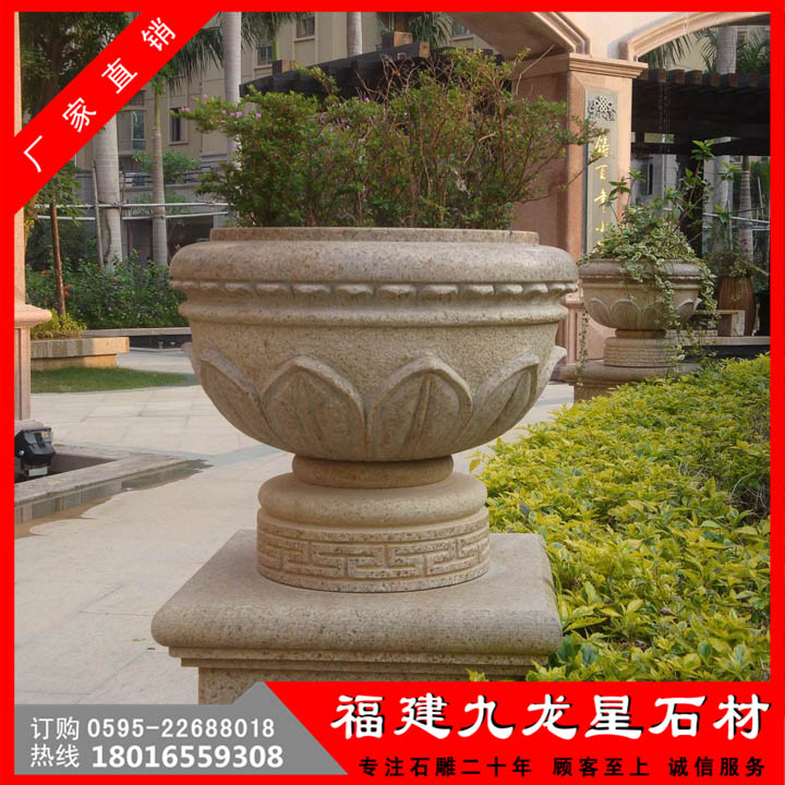 園林花缽石雕文化在中國的歷史上,有著很輝煌的歷史,它的美一直傳承到了現(xiàn)在,不僅是視覺上的享受,也是一種文化的熏陶!它采用天然石頭精雕細琢而成的石雕園林花缽。形態(tài)逼真,栩栩如生。適用于小區(qū),廣場,園林,酒店,學(xué)校,戶外園林景觀工程等場所。
