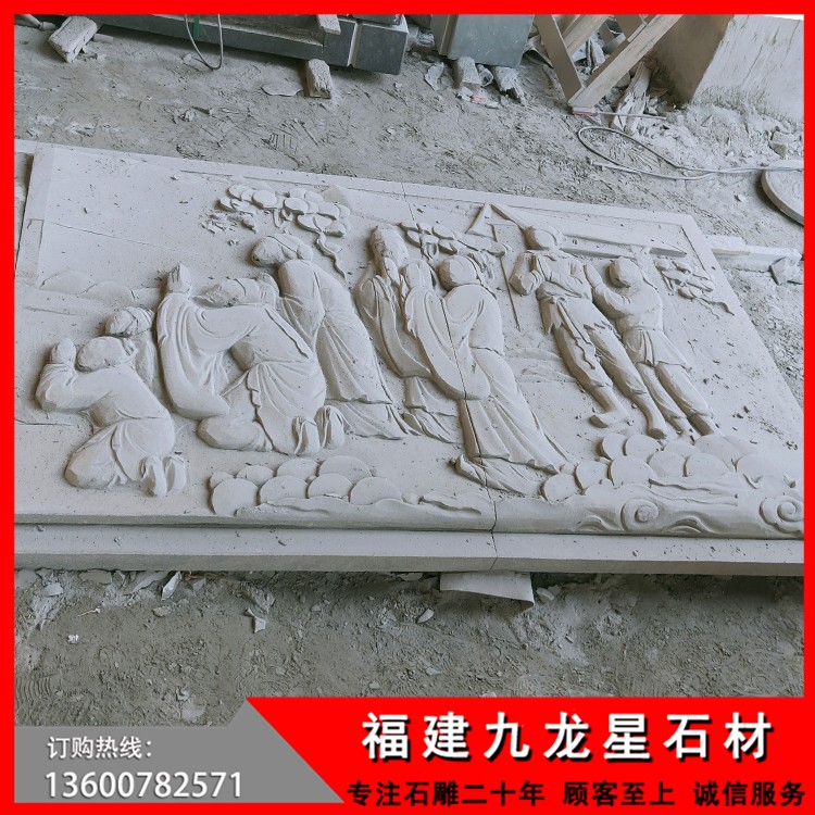 規(guī)格尺寸:6.3米千順將軍,88米梅蘭菊竹欄桿,120平媽祖神話故事浮雕