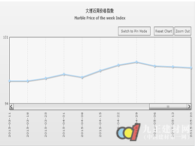據(jù)“中國(guó)·水頭石材指數(shù)”系統(tǒng)監(jiān)測(cè),20150520期石材周價(jià)格指數(shù)收?qǐng)?bào)于98.63點(diǎn),環(huán)比略上浮0.01點(diǎn),上浮約0.01%。本周石材價(jià)格指數(shù)穩(wěn)中微升,其中大理石類(lèi)價(jià)格小幅下滑,其他石材類(lèi)價(jià)格環(huán)比持平,花崗石、合成大理石類(lèi)價(jià)格均有所回升,本周石材價(jià)格總體走勢(shì)平穩(wěn)。大部分品類(lèi)價(jià)格仍較穩(wěn)定,部分品種價(jià)格隨板面質(zhì)量及市場(chǎng)需求變化小幅波動(dòng)調(diào)整。
