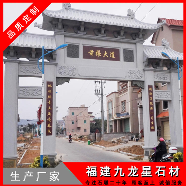 隨著歷史的發(fā)展,村門基本都修建石牌坊,也就是常說的村門石牌坊,村門牌坊是建筑文化中的重要組成部分,經(jīng)過悠久的歷史傳承和發(fā)展,美麗鄉(xiāng)村牌坊圖片樣式和功用在不斷增加,農(nóng)村牌坊蘊含豐富而深刻的文化內(nèi)涵。