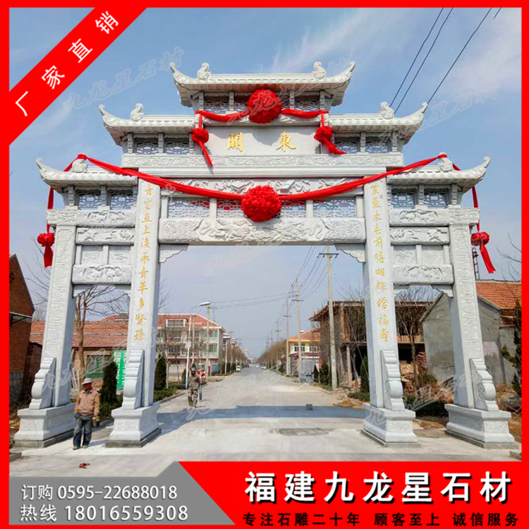 第二:牌坊大小,大型牌坊也有大小之分,筆者見過最大的牌坊高達(dá)6米,左右寬12米,深3米,整座牌坊完全采用立柱搭建,造型別致,精妙絕倫,這樣的大型牌坊價格是非常高的,當(dāng)時聽聞,需要幾千萬制作而成。但是普通的三門牌坊也可以稱之為大型牌坊,價格不過幾萬到十幾萬也非常多。主要是越大的作品,需要加工的工藝和使用的石料都會增加,并且后續(xù)的運輸,安裝也會非常的繁瑣導(dǎo)致的。