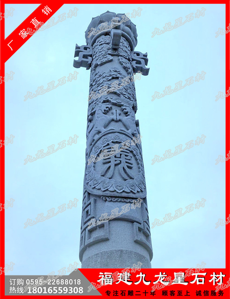 我國的廣場景觀文化柱子石雕除了具有圖騰性質(zhì)和紀念性的華表、墓表之外還有許多寺廟中宣揚宗教教義、經(jīng)文的文化柱,到了近現(xiàn)代文化柱除了紀念性之外更多的作為宣傳歷史文化、民族文化、傳統(tǒng)文化等的載體而出現(xiàn)。比如曾作為2009年中華人民共和國建國60周年國慶的慶典背景之一的民族團結(jié)柱就是紀念性和文化性的綜合體。它們的紀念性體現(xiàn)在:民族團結(jié)柱共五十六根,象征五十六個民族,整體色調(diào)為中國紅和金黃色,柱頭柱礎(chǔ)為蓮花紋飾和卷草紋的結(jié)合與人民大會堂的門柱圖案元素一致,相互呼應。寓意56個民族團結(jié)在黨中央周圍,建立民主政權(quán),共同享有民主權(quán)利,柱身為各民族吉祥紋樣以及載歌載舞的場景,體現(xiàn)人民歡慶建國60周年的喜悅之情。他們的文化性體現(xiàn)在:每根文化柱上都雕刻著一個民族的文化符號,包含每個民族特有的文化元素和文化符號,很好的展現(xiàn)了每個民族的文化特色。