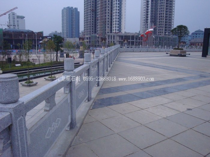 廣場(chǎng)石欄桿低欄高0.2~0.3米,中欄0.8~0.9米,高欄1.1~1.3米。欄桿柱的間矩一般為0.5~2米。