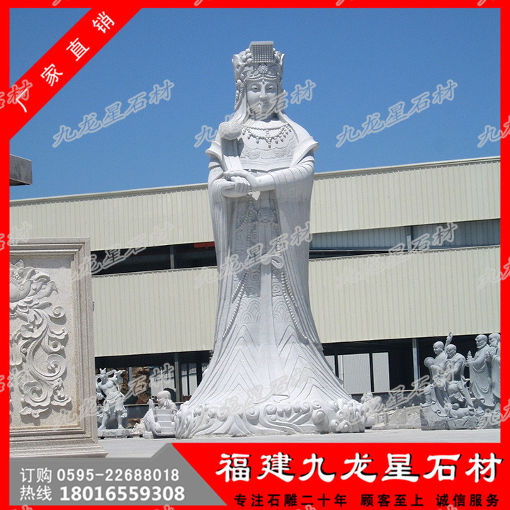 大型石雕媽祖中國民間在海上航行要先在船舶啟航前要先祭媽祖,祈求保佑順風和安全,在船舶上立媽祖神位供奉。這就是“有海水處有華人,華人到處有媽祖”的真實寫照。而影響所及,媽祖由航海關系而演變?yōu)椤昂I瘛薄ⅰ白o航女神”等,因此形成了海洋文化史中最重要的中國民間信仰崇拜神之一。