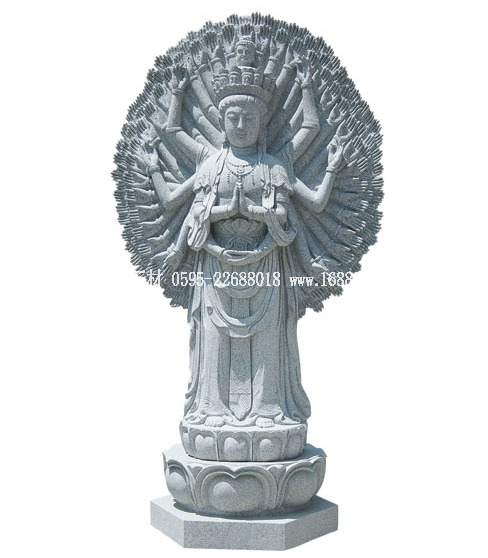 石雕千手觀音含蓮花底座總高度2.36米。千手千眼觀音,又稱千眼千臂觀音,簡(jiǎn)稱千手觀音。千手表示護(hù)持一切眾生,千眼表示觀照一切眾生,有大慈大悲、法力無(wú)邊的意思。千手觀音的來(lái)歷佛經(jīng)里有記載。相傳在久遠(yuǎn)的過(guò) ...