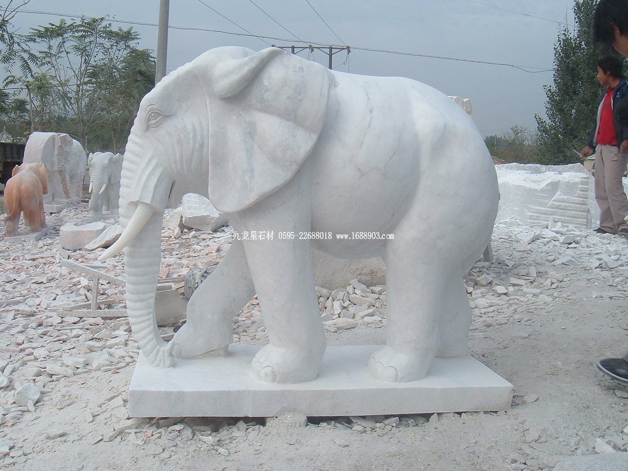 此尊漢白玉石雕大象含踏板高2.8米,材質(zhì)為湖南漢白玉,現(xiàn)代非洲像造型。