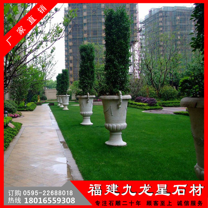 石雕花缽靈活多樣,隨處可用,尤其對于城鄉(xiāng)建筑比較密集和其他一些難于綠化地區(qū)的美化,有著特殊的意義。美化環(huán)境時,可根據(jù)缽、盆樣式、大小的不同,進(jìn)行多種多樣的藝術(shù)組合。組合的形式可以是幾何式、自然式、混合式、集中布置、散置等,具體布局形式要由美化地點的具體情況決定。在較寬敞的地方,如廠前區(qū)、廣場、大型建筑門前、道路交叉口、停車場等處,可布置為樣式多變、五彩繽紛的小花壇,在商店、住宅的門前可隨機(jī)點綴一二。
